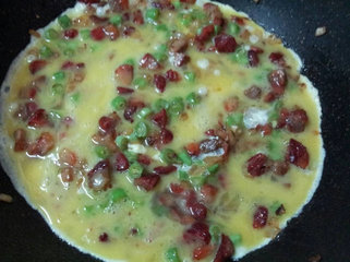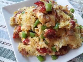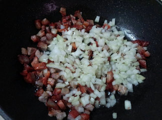 主料:叉烧半斤 ( 切粒 ),长豆角五条 ( 切粒 ),洋葱半个 ( 切粒 ),蛋三个 ( 打散)