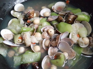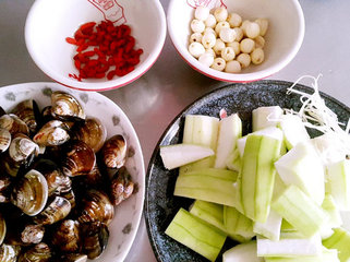 主料:蛤蜊600克,枸杞,莲子适量,丝瓜1条