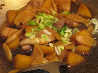 4 、下调味料转大火煮滚后,改转小火,盖上锅盖闷煮1小时。