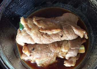 1、材料准备:料理前一天先将肉片洗净用 腌料 腌好放冷藏。葱洗净切段。