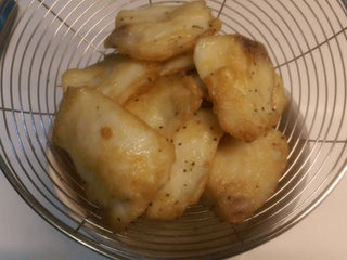 鲷鱼的粉必须太白粉与地瓜粉各半,因为有太白粉鱼比较滑嫩,加地瓜粉是希望鱼不容易散掉,腌好的鱼片中还是加点食用油,在油煎时比较不会互相沾黏。