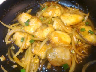 主料:鲷鱼2片,洋葱1/4个,蒜末适量,青葱2支,蕃茄酱2大汤