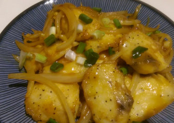 配料:白糖1大汤匙,鲜鸡粉少许,水2大汤匙,太白粉水少,许全蛋1/2,盐1小匙,黑胡椒少许,米酒少许,太白粉1匙,地瓜粉1匙