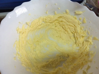 1、奶油(软化)+糖粉(过塞)搅拌均匀...搅拌成淡黄色..羽毛状。