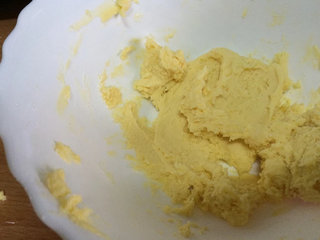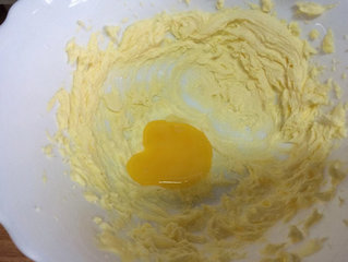 2 、在加蛋黄....搅拌均匀...搅拌到奶油与蛋都完全吸收。