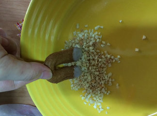 4 、把即溶咖啡,打碎一点.细一点,这样加入面团中才好融合在一起。