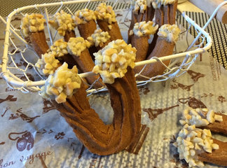 5 、装进挤花带中...挤出U的形状...用170~烤20分钟。
