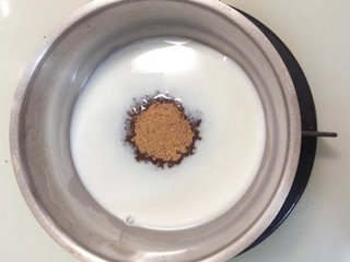 1、食材先秤好,鲜奶加黑糖煮沸即关火。