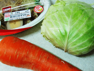 主料:高丽菜150克,红萝卜70克,葱绿2支,猪肉片3片,低筋面粉4小匙,水6小匙