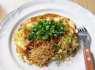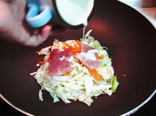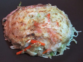 广岛烧,喜欢广岛烧,有面又有大量蔬菜,再加个两片猪肉,大碗满意这样。拿干意面来弄,特别是有现成的意面肉酱,可以省去制作调味酱的。而且营养美味哦!