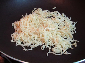 8、平底锅加点油,面条下锅稍微炒一下,加盐、胡椒调味,和1小匙意面肉酱。