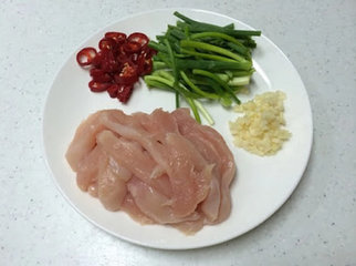 主料:鸡胸肉一大块,豆芽菜两把,葱五根,辣椒一根,蒜头三瓣
