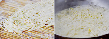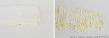 7、在切好的面条上撒上点干面粉,用手抖开。