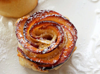 苹果玫瑰酥,看起来制作工序非常的复杂,其实是非常的简单的,就短短的几步工序而已,而且非常的好吃,香甜爽口。改变了传统苹果的吃法,真是好看又美味的甜品哦!