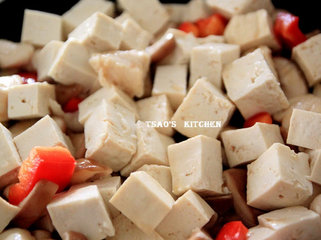 6 、加入调味料与豆腐,煮滚后转中小火加盖烹煮10分钟即可。(煮的时候可用木铲轻推或晃动锅身帮助入味)