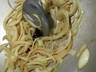 3 、香气弥漫整个厨房后(真享受),置入适量蚝油平衡一下洋葱的甜味。