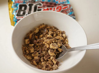 3 、敲到还带有大小碎巧克力的状态即可。