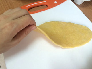 3 、将面团擀薄约0.2公分的长方形...越薄越好。