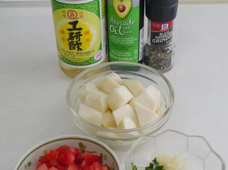 配料:橄榄油1大匙,白醋(或柠檬汁)1大匙,烹大师(或盐巴)适量,黑胡椒适量