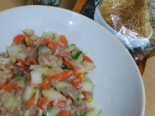 主料:绞肉一盒,蔬菜1份,蛋1颗