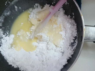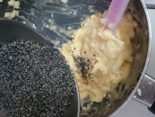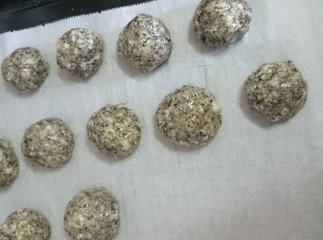 4 、再加入芝麻粉拌匀。(状态是很黏的)