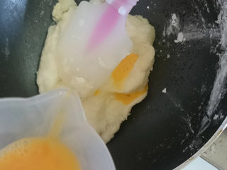 3 、再分次加入蛋液并拌匀。(会比较难拌要出点力)