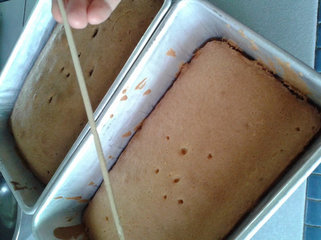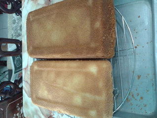3 、倒扣待凉。过后放进冰厨一小时,让蛋糕体变硬,比较方便切。
