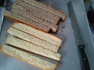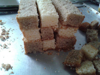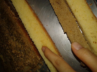 11 、涂上咖啡奶油霜,让蛋糕体黏着。