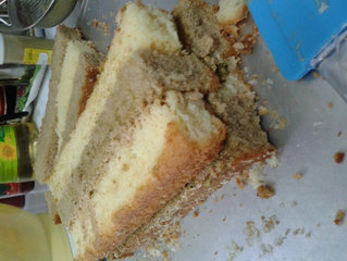 2 、过后把拌好的面糊平均地分成两份。一个放入可可粉,或放其它的粉(随你的口味,我放三合一抹茶粉)。另一个则是原味。倒进在模子底已放了蛋糕纸的模子内,放进烤箱170度c,40-50分钟。插入竹签如果没有任何面糊就代表蛋糕已完成。