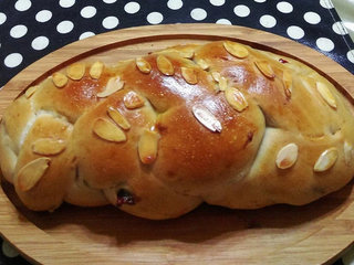 3 、烤前表面洒杏仁片.刷蛋液,烤温180/180 20分。
