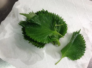 1、紫苏叶要选用新鲜的幼嫩为主,老又大的紫苏叶则是苦涩,所以要小心。 买来之后用水冲一下,用餐巾纸充分吸去水气。
