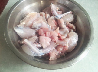 1、田鸡处理干净,砍小块,皮是有营养的可以不用去,不过我不爱吃。