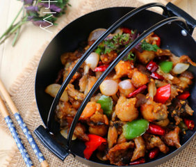 干锅牛蛙,蛙肉鲜嫩甜美,口感非常的好。相信很多吃过蛙肉的人们来说,都很难忘怀,但是蛙肉含有寄生虫,要用高温多煮会,就可以放心使用了哦!