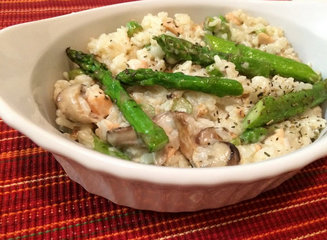 鲑鱼芦笋奶油饭,吃腻义大利面了吗?把面条换成白饭换个口味吧!简易版鲑鱼芦笋奶油饭,30分钟上菜!好吃美味又营养健康!小伙伴们快来试试吧!