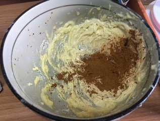 8 、奶油霜....奶油+糖粉打到乳白色在加入...再次打细的咖啡粉。
