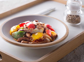 沙茶三色椒炒肉丝,是属于一道健康美食,而且材料全都是易买又易煮的。其中三色椒含丰富维他命C和胡萝卜素,能高效抗氧化;叶绿素更有助排出坏胆固醇。配合沙茶酱同煮,味道香浓营养又高。