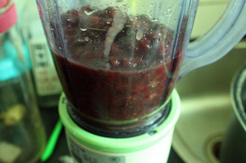 5、将红小豆连同汤汁一同倒入料理机中,研磨成稀泥状。