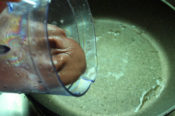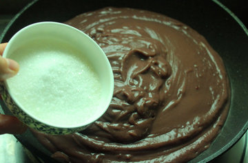 6、将红豆泥倒入平底锅中。