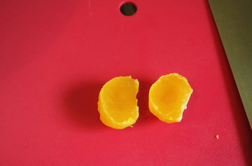 10、待烘烤过的咸蛋黄冷却后,切对半备用。