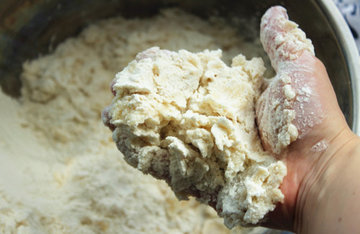9、将所有材料混合,揉搓成光滑不粘手的油酥面团。