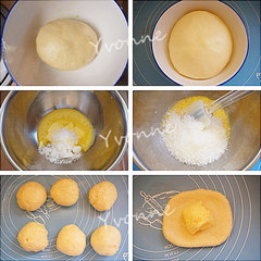 配料:软化黄油30G,细砂糖25G,全蛋液30G,椰蓉50G