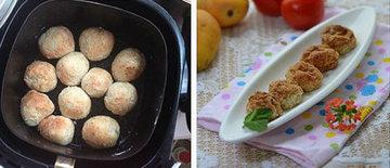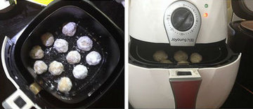 9、做好的丸子放在已预热的空气炸锅篮子中。