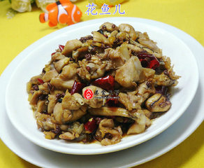 4、接着,下入焯熟的牛蛙翻炒翻炒。