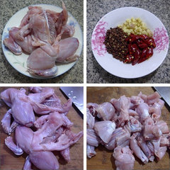主料:牛蛙(已洗净)、姜末、花椒、干辣椒(已剪开)