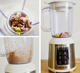 1、将肉和所有调料放入料理机内。