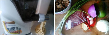 主料:高筋面粉210克,全蛋液50克,水25克,盐1克,牛肉100克,洋葱三分之一个,柿子椒半个,豆腐60克,土豆半个