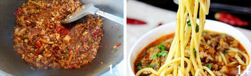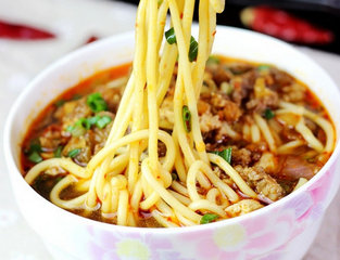 14、将炒好的臊子加入适量到面里,就可以快乐地享受美食啦。