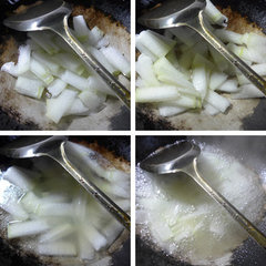2、烧锅倒油烧热,下入切好的冬瓜翻炒翻炒。