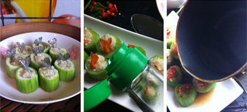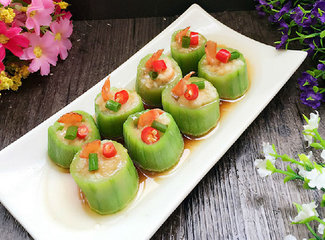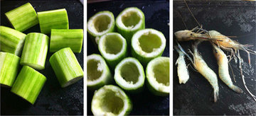 3、蒸的时间3-5分钟,断生后再焖一分钟即可,否则蒸久了虾肉变老,丝瓜盅也会过于软烂而无法站立。