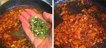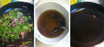 10、加点葱花炒匀。